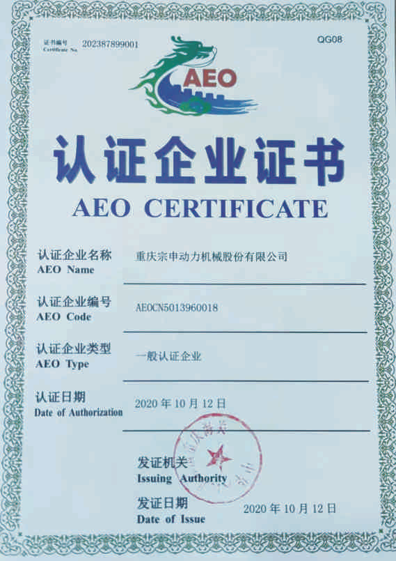 2020年11月19日,中華人民共和國重慶兩江海關隆重舉行中國海關認證企業(yè)(AEO)授牌儀式,對重慶宗申動力機械股份有限公司等通過AEO一般認證的8家企業(yè)頒發(fā)認證證書,宗申動力零部件事業(yè)部副總經理張宏偉...